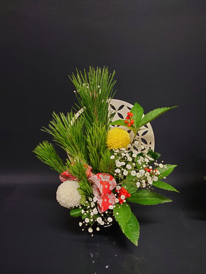 正月花材は特に高騰するため通常よりお高くなりますが花持ちはよく一カ月程持ちます。